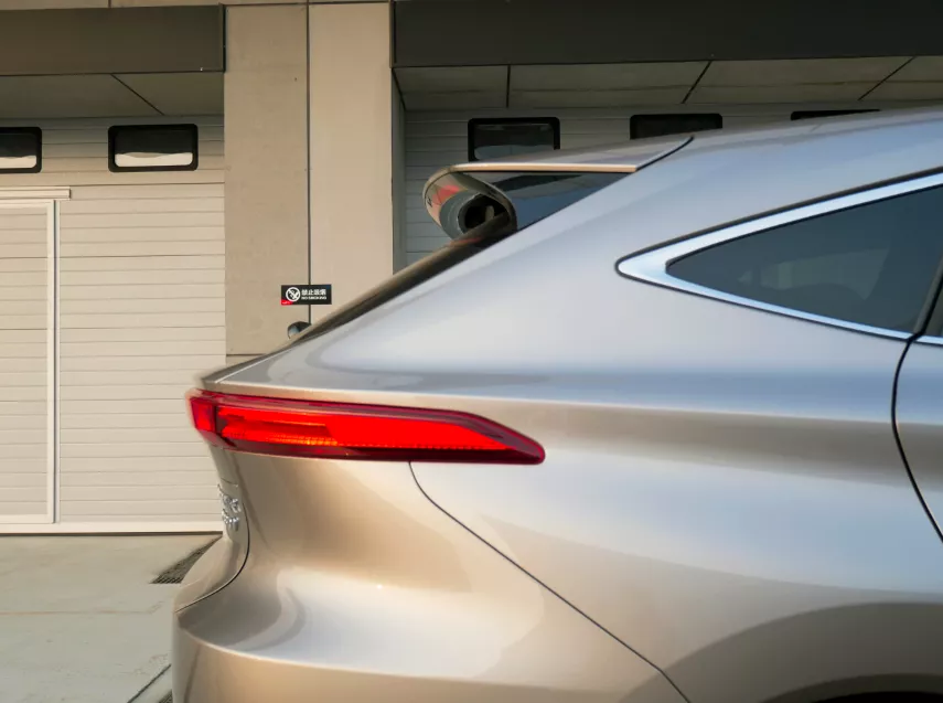 车身侧面不难看出雷克萨斯的影子,但还是有很大的不同,前半段主要以曲面造型为主,而到了后尾门的位置,则是应用了曲面挤压原理,营造出了突出的后翼子板和深刻的后腰线,因此车尾的张力十足,一直延伸到突出的尾灯。